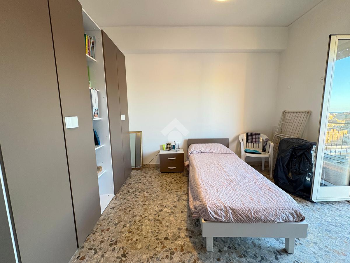 APPARTAMENTO proponiamo in vendita un appartamento di 86 mq situato al 10° e ultimo piano di un edificio dotato di ascensore e servizio portierato. La posizione elevata offre una vista panoramica sulle città che si può ammirare dai tre balconi, accessibili da ciascuna delle tre camere, ideali per trascorrere momenti di convivialità. L'ingresso si apre su un disimpegno che conduce alle stanze, garantendo una distribuzione funzionale degli spazi. La cucina, arricchita da una comoda veranda con annessa zona lavanderia. Il bagno è dotato di box doccia ed è finestrato. L'immobile si trova in ottimo stato ed è attualmente locato a studenti con una rendita annua superiore ad €5000.